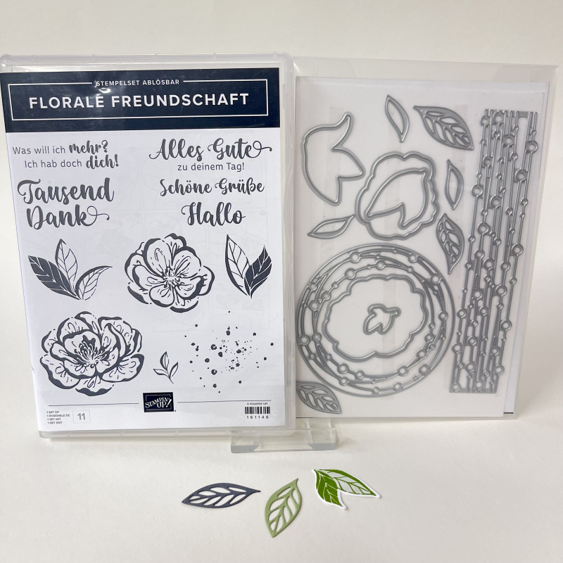 Sie bekommen das Stempelset - sehr wenig gebraucht - und die passenden Stanzteile