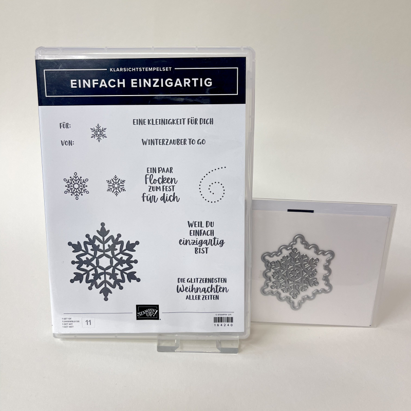 Sie bekommen das Stempelset - sehr wenig gebraucht - und die passenden Stanzteile